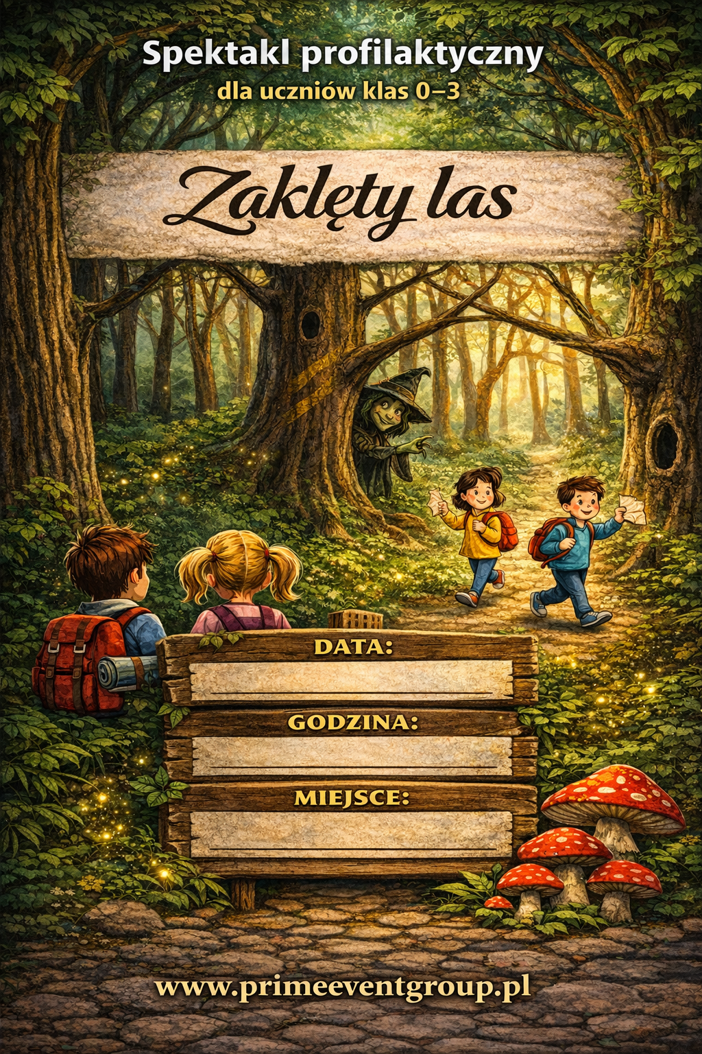 Zaklęty las to spektakl adresowany do przedszkolaków i uczniów klas 0-3 szkół podstawowych. Jest to historia niesfornego rodzeństwa Franka i Mai …